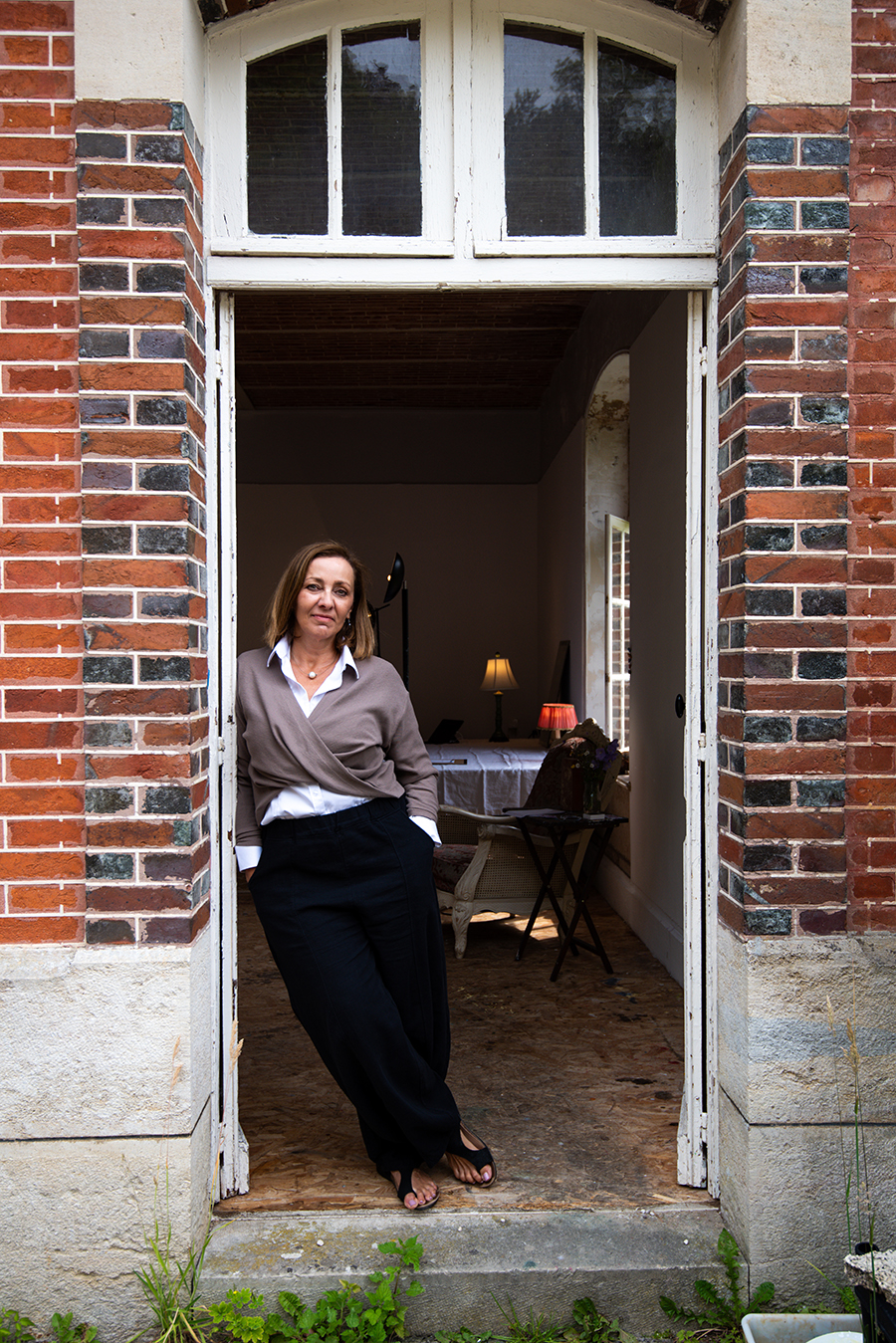 The artist, Margret McDermott, in the doorway of her studio at the Château d’Orquevaux residency in the Champagne region of France. Photo Credit: Jayden Dukes